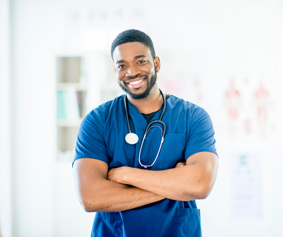 Male nurse smiling with arms crossed